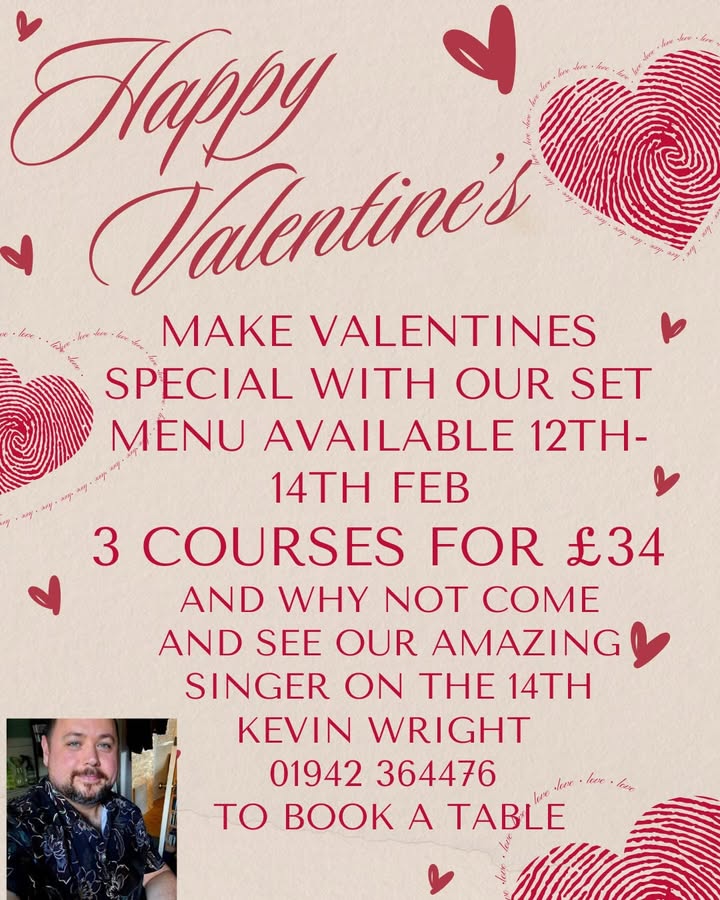 We have Valentines and Mothers Day set menus 01942 364476 to book