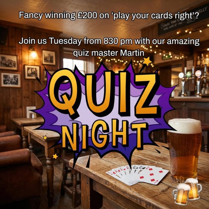 Fancy winning £200 on ‘play your cards right’? Join us Tuesday from 830 pm with our amazing quiz master Martin